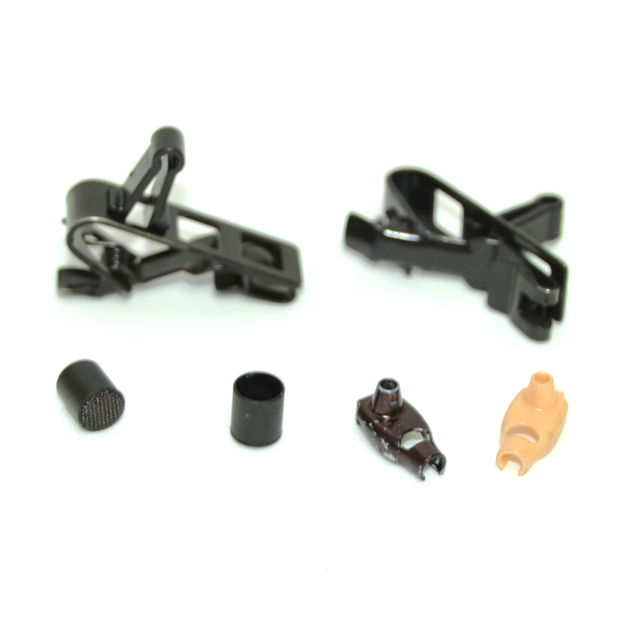 Micrófono miniatura de condensador omnidireccional con conector Microdot, en Beige y Negro, con adaptadores a TA5 y MiniJack, concealers y opción cápsula Slim.