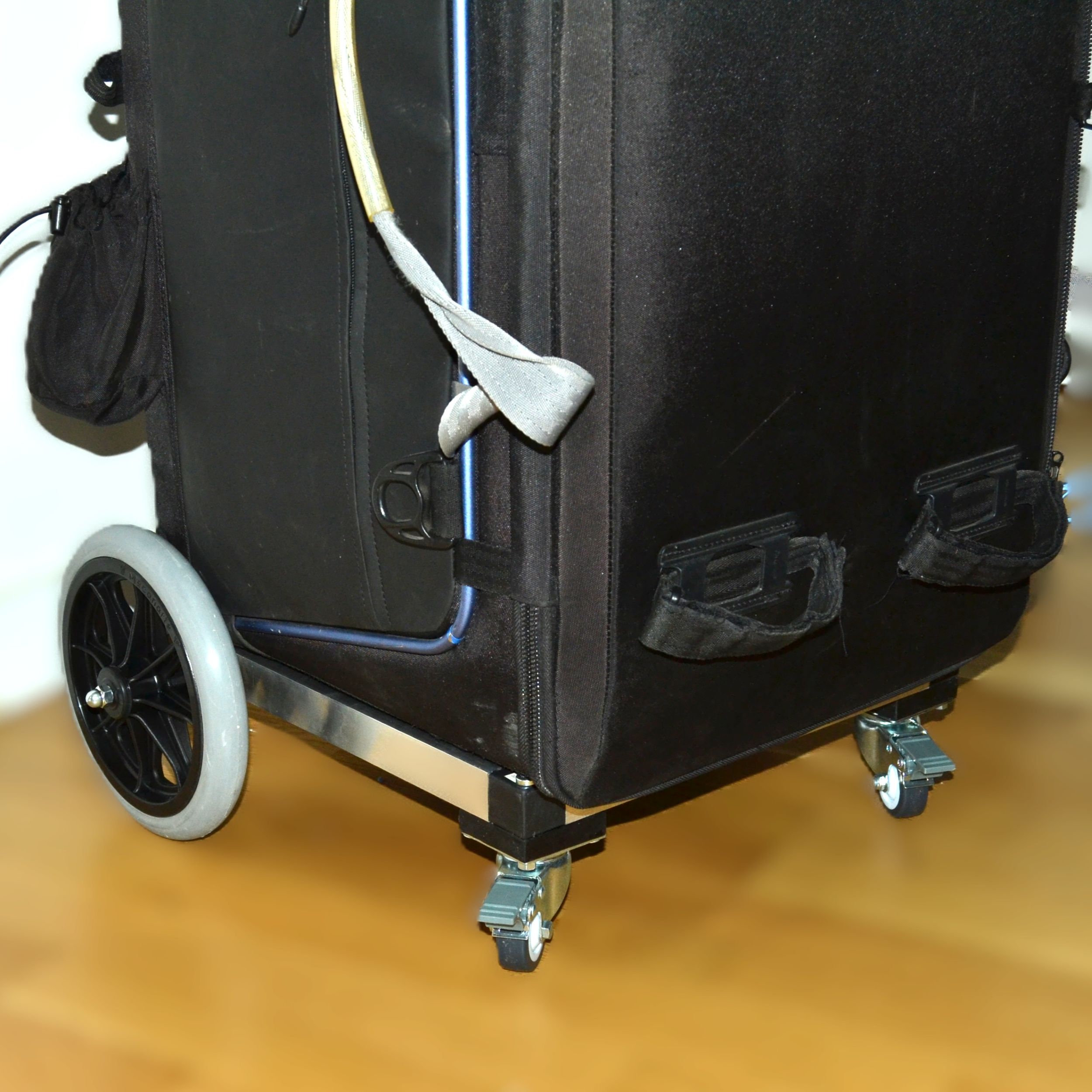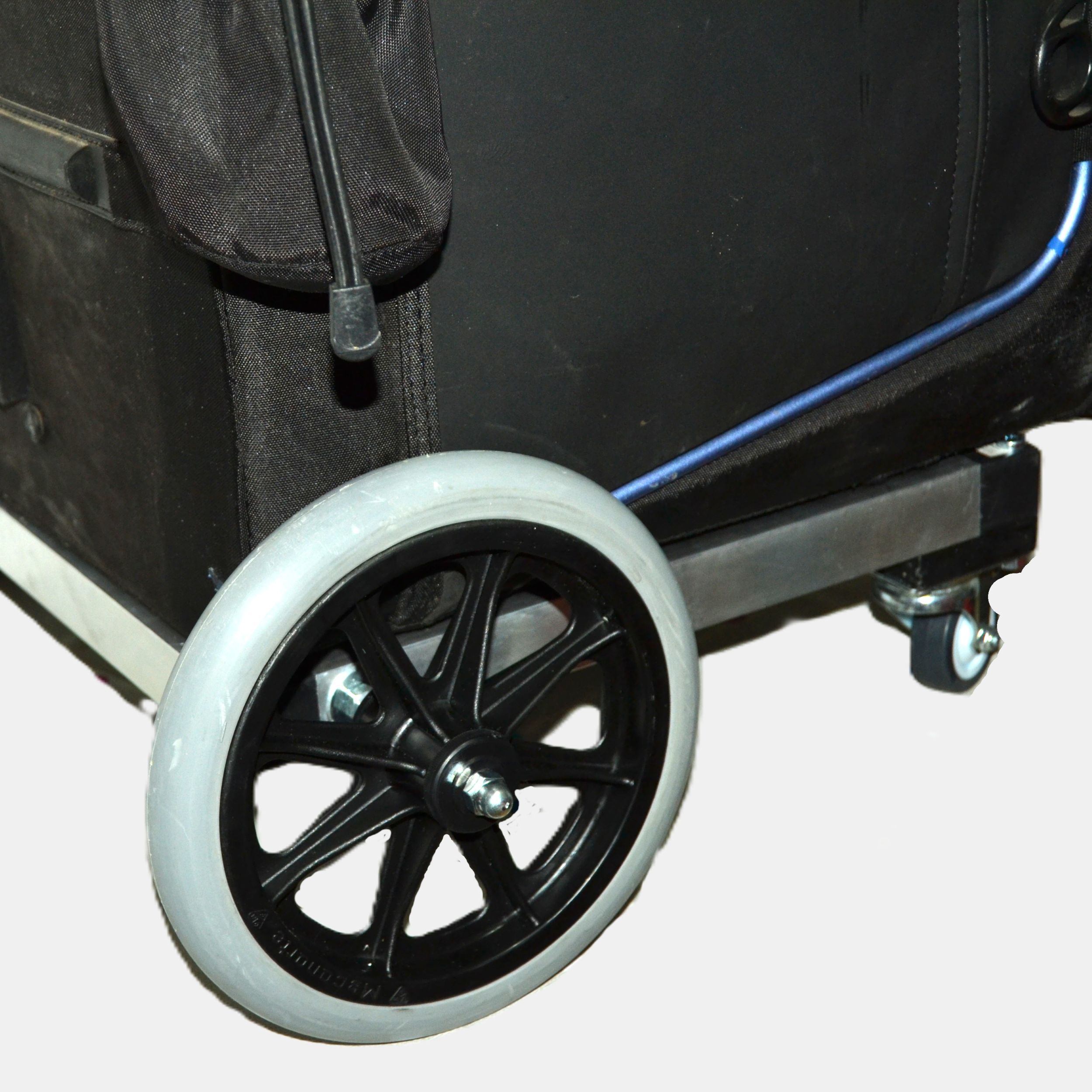 Eliminación de ruedas antiguas o en mal estado, por ruedas de 20 cm u otras a elección. Para maletas Orcart, instalamos una base de perfil de aluminio fija a la maleta con eje trasero para ruedas de mayor dimensión, la modificación es personalizada según tus necesidades.