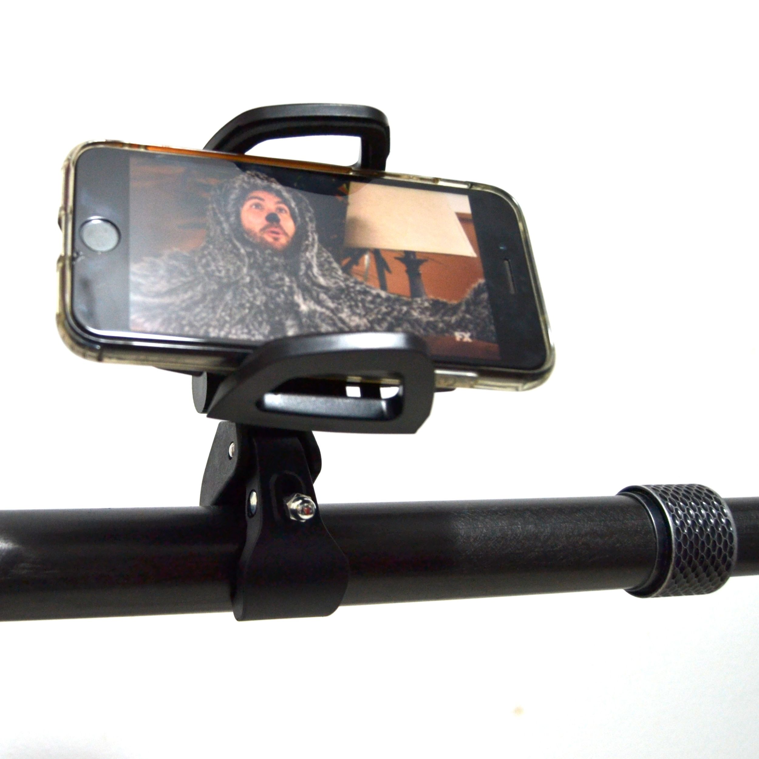 soporte adaptable para diferentes tamaños de smartphone, con rosca de 3/8 para acoplar a cualquier soporte de micrófono